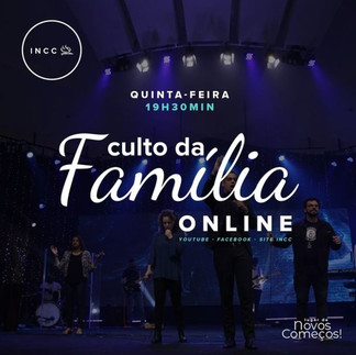 O Culto da Família, todas as quintas-feiras, as 19.30h, na INCC, traz um enfoque bíblico para o dia a dia nos relacionamentos entre pais e filhos; entre marido e mulher; e a importância da Palavra de Deus nas relações de trabalho e convivência familiar.